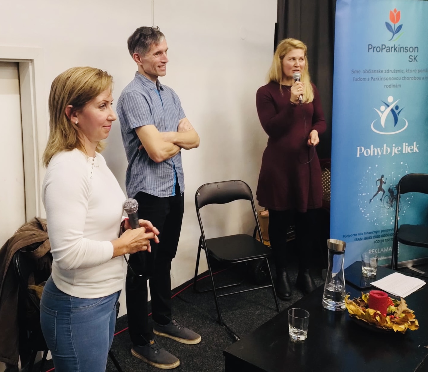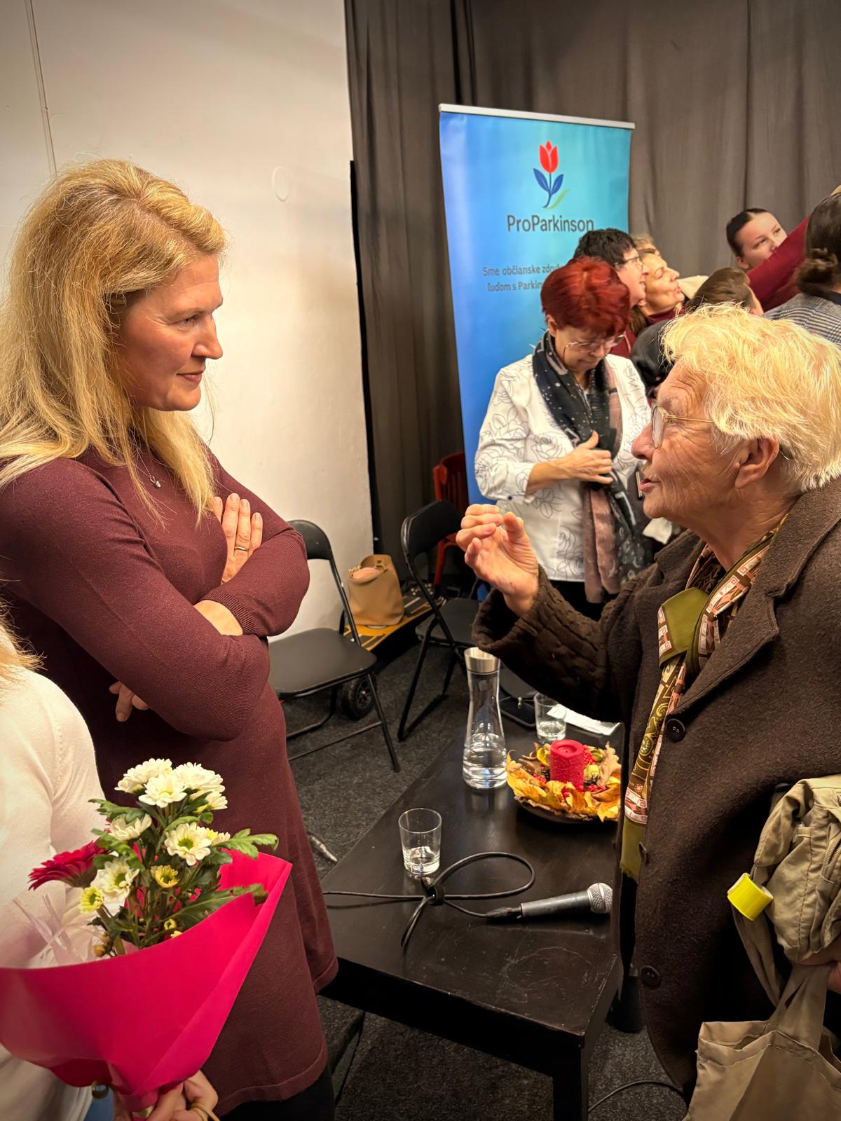 Stretnutie organizované ProParkinson SK a sdružením Pupalky v Banskej Bystrici bolo krásnym popoludním plným spojenia, rozhovorov a užitočných informácií. Hostia Mgr. M. Pupalová a MUDr. Ján Kothaj priniesli jasné, praktické a veľmi cenné poznatky o pohybe, prevencii pádov a najnovšej liečbe Parkinsonovej choroby. Atmosféra bola priateľská, otvorená a nabitá energiou. Ľudia si mohli vyskúšať simulátor Gert, porozprávať sa, zdieľať skúsenosti a nakoniec si užiť benefičné divadelné predstavenie NOSNIKRAP, ktoré sa stalo hrejivou bodkou celého dňa.
